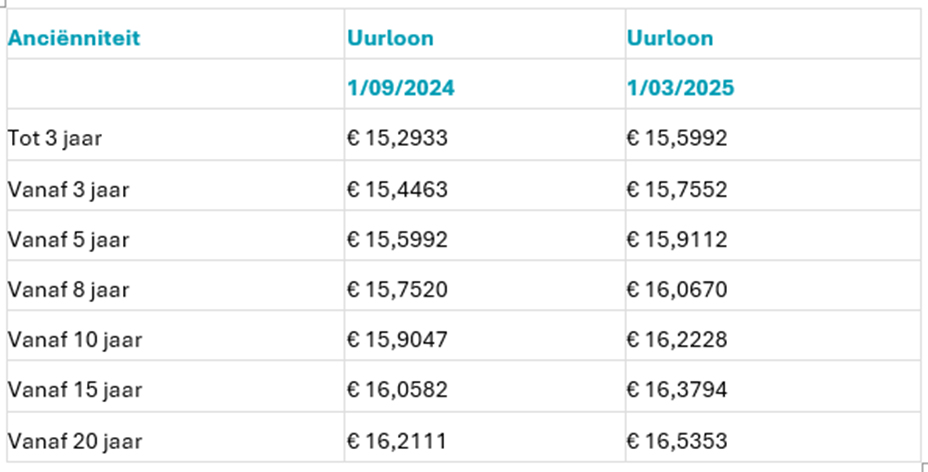 Ten gevolge van deze indexering bedragen de minimumlonen onder de VVB-CAO in het regime van de 38-uren werkweek vanaf 1/3/2025: